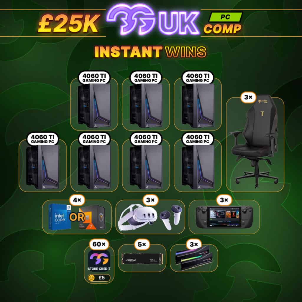 The main prize & runner up prizes of this competition will be drawn during the live draws. However, when you purchase a ticket, you could automatically win one of these 85+ prizes!